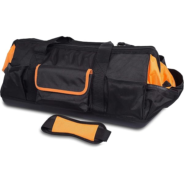 Internet S Best Soft Sided Tool Bag 14 Inch 16 Pockets Wide Mouth Hard Base Tool Storage And Organizer Box Amazon Com